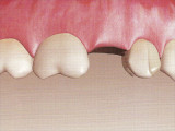 La solution que nous recommandons est de remplacer votre dent absente par une couronne qui s'intégrera dans un bridge. Le bridge est un ensemble de trois dents prothétiques solidaires qui s'appuient sur les deux racines voisines de la dent absente.